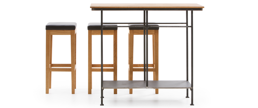 Die archaico-Möbel nutzen die Vorzüge von Eisen und Holz zugunsten einer